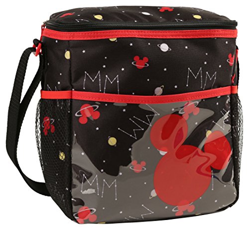 This Diaper bag has an eye catching design and is extremely functional for toting your baby's essentials around. By storing baby's bottles in the interior, or side bottle pockets, you'll never have to worry your baby's bottle spilling or making a mess. Adjustable strap for easy wearing. The world's most iconic characters, Disney's Mickey Mouse, is highlighted on this fashionable and functional diaper bag. Kids and adults love these timeless characters that are always on trend. Everyone relates to an always fun-loving Mickey Mouse.Feature
