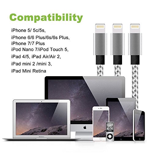 WARNING: Please kindly ensure the power outputs do not exceed 2.0A / 5V. Aonsen Durable iPhone Lightning Cable Sync Cord Uses High-Quality Copper Core. Ultra Fast lightning Ultra-Resistant. Extra Strong and Durable. Precise Interface Design. Unique High Voltage. Good Signal High-Speed Stability. Nylon Series Instead of plastic or polycarbonate sheathing, this Aonsen lightning cord features a unique high tensile nylon construction. Sturdy and tangle-free design, covered a with braided-nylon fiber jacket and anodized aluminum shell, which is durable and sturdier than normal lightning cables but is also flexible and tangle- free. The braided finish looks and feels great, but also prevents tangles, increases strength and is easy to carry. Perfect Compatibility Complete lightning and sync compatibility with new iPhone 7, iPhone 7 plus, iPhone 5, iPhone 5s, iPhone 5c, iPhone 6, iPhone 6 plus, iPhone 6s, iPhone 6s plus, iPhone SE, iPad Pro, iPad Air, iPad Air 2, iPad mini, iPad mini 2, iPad mini 3, iPad mini 4, iPad 4, iPod Touch (5 Gen), iPod Nano 7, Compatible with the latest iOS10 operating system without any error messages. Amazing Pack Of 4 At A Great Price! One package includes amazing pack of 3ft 6ft 6ft 10ft tangle free nylon fiber braided lightning cords at an incredible value price. From now on, you don't have to "live" by the wall-plug, but can lounge in bed or on the sofa using your iPhone/iPad/iPod while lightning. Warranty Policy Enjoy brand new replacement or a refund within ONE YEAR. BEWARE of COUNTERFEITS: CHECK SELLER NAME BEFORE PURCHASING! Aonsen PRODUCTS CAN ONLY BE SOLD by 'Aonsen - Fulfilled by Amazon' or 'Aonsen'. 0 |