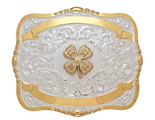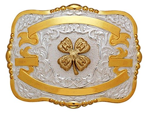 Studio : Crumrine Publisher : Crumrine Binding : Apparel Product Description Kids Crumrine Belt Buckle: Cowgirls and Cowboys got heart! This rectangle Crumrine belt buckle features a unique and detailed gold 4H four leaf clover design on silver with bead edges. The gold banners are perfect for engraving rodeos, dates or name as a trophy award. Available in 3 sizes: S (3 x 3 1/2") M (3 1/4 x 4 1/2") L (4 x 5"). Grandma Bait - -Get Hooked 384 0