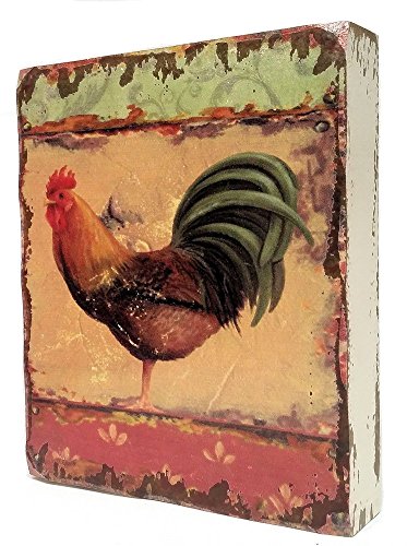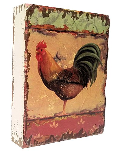 This wooden rooster wall decor plaque is box style and has a vintage, distressed look. It measures 9.75"H x 7.75"W x 2"D. Choose from two styles - brown rooster or white rooster - or buy one of each and display as a set. Makes a great gift or kitchen decor accent piece.