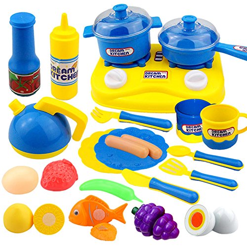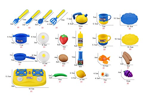 -. Title : Kitchen Tools Fun Cutting Food Fruits Vegetables Tea Playset for Kids, Girls Boys Early Age Development Pretend Play Toys Cooking Sets (43 Piece)