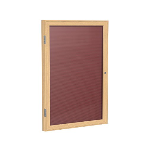 Ghent 24" x 18" 1 Door Enclosed Flannel Letter Board, Burgundy Letter Panel, Oak Finish (PW12418B-BG)