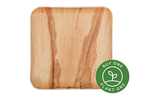 25 Heavy Duty Disposable and Home Compostable Party Plates made from Palm Leaf • 9 inch Square