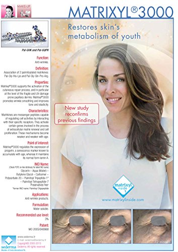 MATRIXYL 3000 - The first Anti-Aging ingredient based on the matrikine peptide technology, its Efficiency has been Demonstrated on Both Women and Men. A clinical study demonstrated that after just 2 months of Treatment with Matrixyl® 3000, the surface occupied by