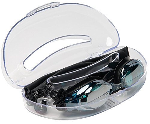 ✓ DURABLE AND RELIABLE. Shatter-resistant lens. Robust, long-lasting, durable PVC plastic, and rubber for our goggle frame, head strap and nose clip. Soft stretchy, and form-retaining silicone swim cap and silicone ear plugs. These materials make for a rugged, wear-resistant set.