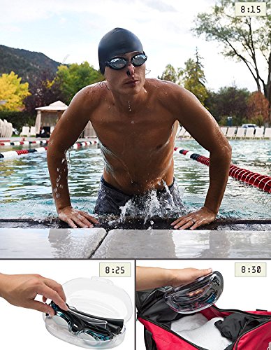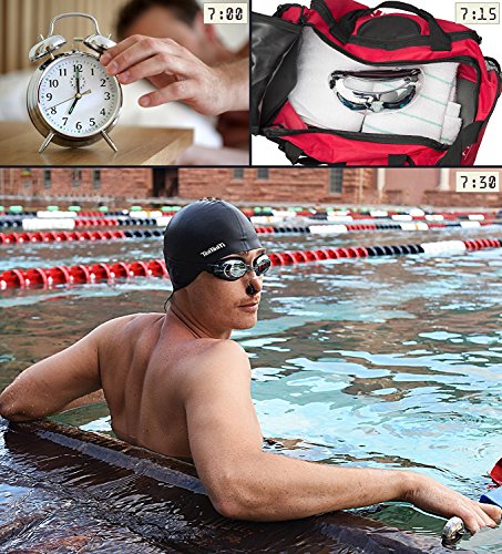 ✓ A COMPLETE SET. This will be your one-stop-shop. This set includes a swim cap, swimming goggles, nose clip, and ear plugs that are all designed to compliment each other to give a consistent look and fit. Feel good wearing our set – strong, vibrant, confident, and renewed.