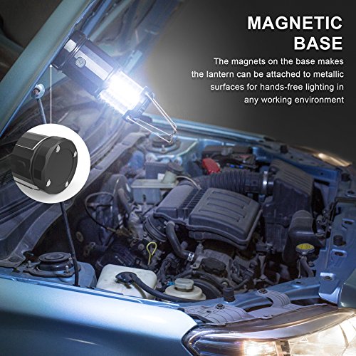 - STRONG MAGNETIC BASE: Get bright light without holding the lantern yourself. Quickly stick it to car hoods, metal frames, canopies, toolboxes, etc. Extended fold-away handles offer you more flexibility to hang and carry it anywhere.