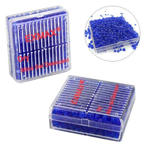 EXMAX Blue Indicating Rechargeable Silica Gel Beads(2-4mm) Desiccant Functional Reusable Hard Plastic Canister Humidity Moisture Absorb BoxDryer for Camera Microscopes Telescopes - 6 Pack