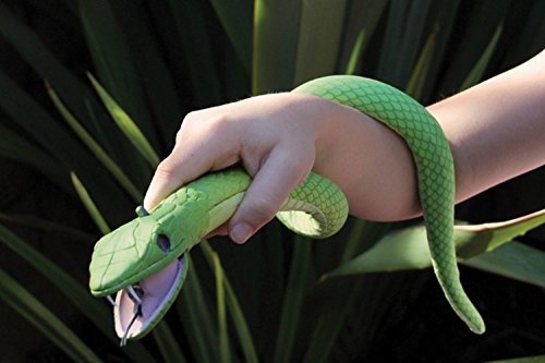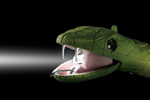Coil this Eastern Green Mamba snake around your arm, and he'll strike a bright beam of light whenever you open his mouth. Close his mouth, and his eyes give off a mysterious red glow. The snake flashlight is sure to be a big hit with reptile-loving kids, who know his fierce appearance is really just for show. Requires 3 button cell batteries (included). Coil this Eastern Green Mamba snake flashlight around your arm He'll beam a light whenever you open his mouth Close his mouth and his eyes glow red Three button-cell batteries included For ages 5 and up.Size22-1/2"Feature