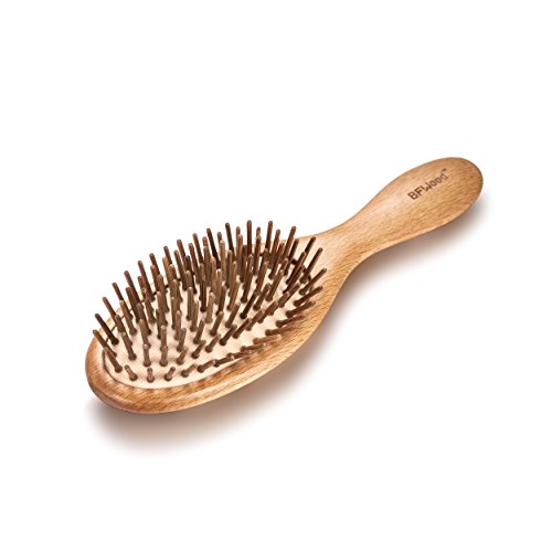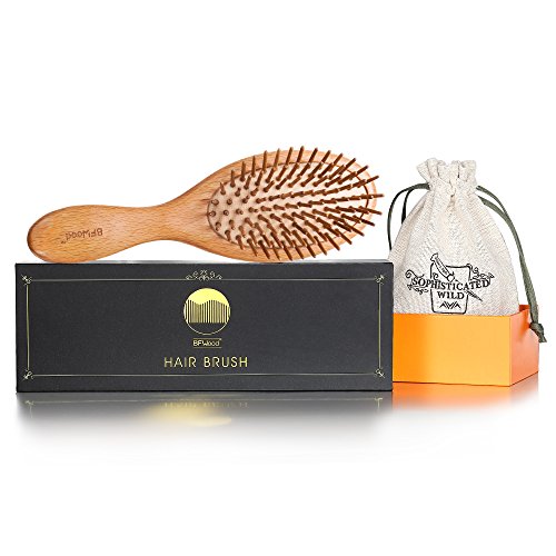 -. Feature : Designed for normal, thick, and curly hair styling brush / Begin brushing a few inches from the hair ends, and gently detangle knots first / Wooden bristles stimulate scalp and blood flow / Made of durable natural beech wood / Perfect gift in well-designed box