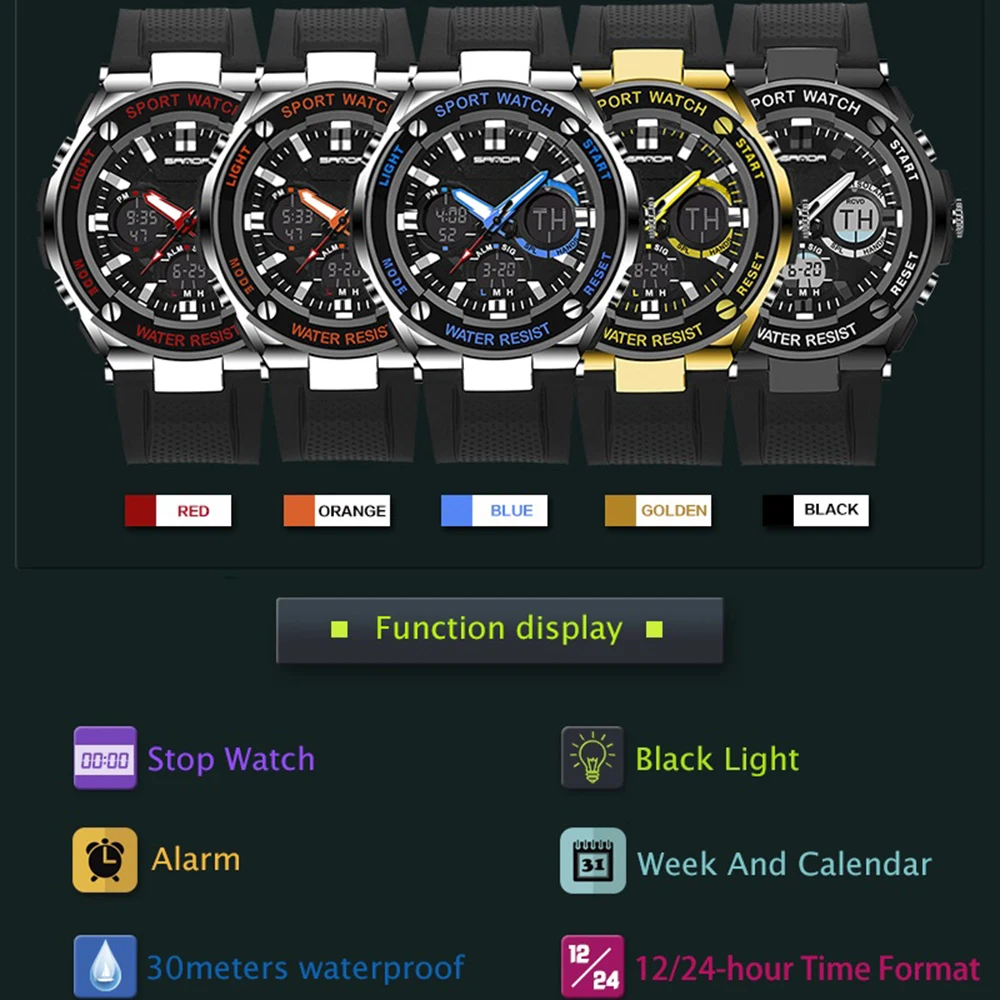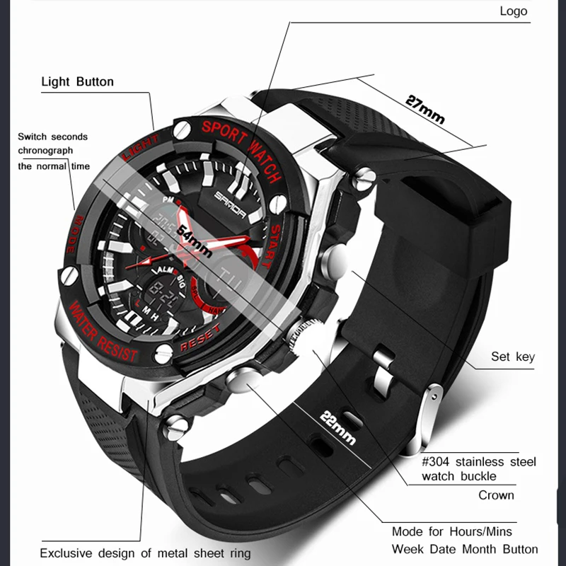 High light:Luxury brand men watch sport digital watch