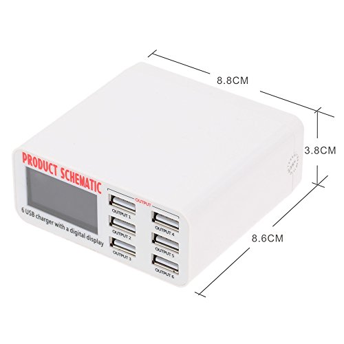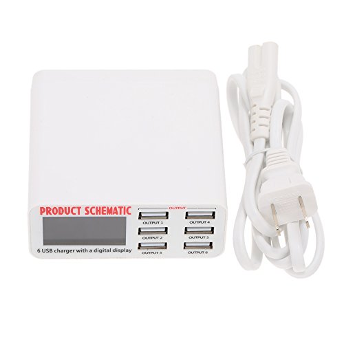 -. Binding : Electronics -. Brand : Jhua -. Color : White -. EAN : 0697061688867 -. Feature : The powerful 6-port smart USB charger turns a cable nightmare into a clean and organized charging station that only needs one outlet / Intelligently detects the input current of the connected devices to maximize both compatibility and charging speed / Output: 0.5-3.5A automatic identification of charging current, max output for single USB port: 5V/3.5A. LCD display for convenient to view each port of its charging current / With the build-in multi-protection system and premium microchips with overvoltage,overcurrent, overheating and short circuits protection / Support 1-6 USB devices charge simultaneously, 5V USB for almost any USB devices,and you can charging more than just your smartphone or ipad with this product, multi-port adapter -. Label : Jhua -. Manufacturer : Jhua -. PackageQuantity : 1 -. ProductGroup : Wireless -. ProductTypeName : PHONE_ACCESSORY -. Publisher : Jhua -. Studio : Jhua -. Title : Jhua 6 Port USB Hub Charger High Speed Fast Charger Station HUB Adapter Charging with LCD Display for iPhone6s/6/6 plus/iPad/ Air/ Mini Pro/Galaxy S6 Edge/ Samsung Galaxy Note 5/ Mini Tablet/ Phones -. UPC : 697061688867