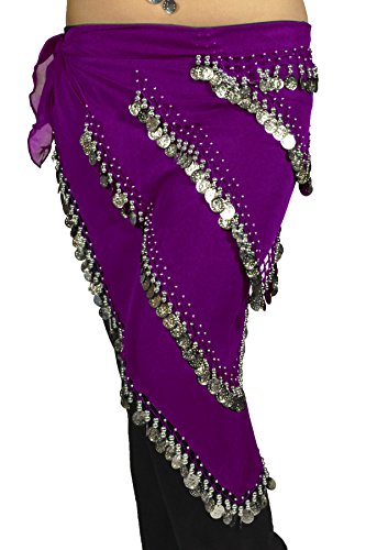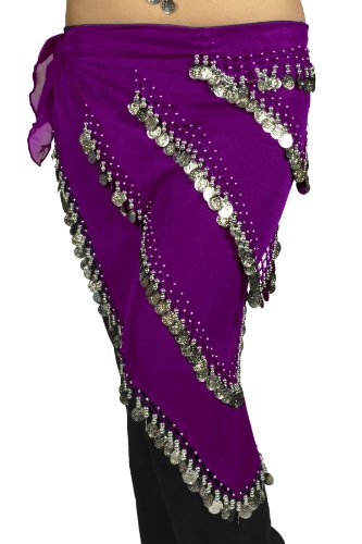 Binding : Apparel Product Description Triangular?Chiffon Bellydance Hip Scarf with 4 V patterns of silver coins. 56 inches wide x 30 inches high. A must have for belly dancer. Good size can be used for Plus Size womens also. Available in 8 colors. Contact us for Wholesale Pricing if you are interested in buying bulk quantity (12 pcs.) 0