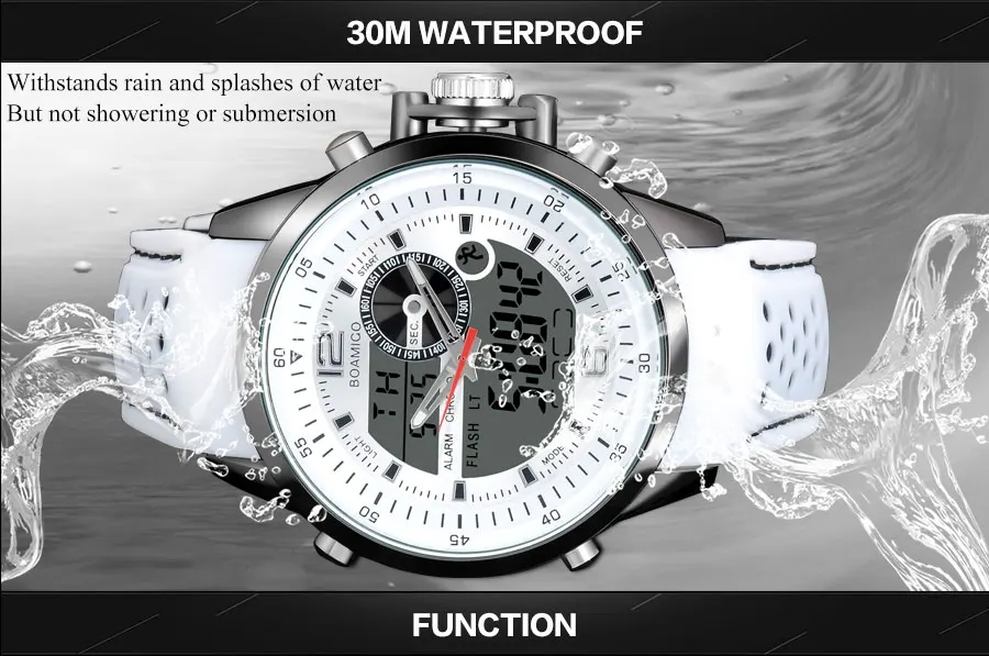 Feature:Water Resistant,LED display,Multiple Time Zone,Stop Watch,Back Light,Complete Calendar,Shock Resistant,Chronograph,Perpetual Calendar,Auto Date,Week Display,Alarm,Swim