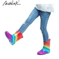 acthink新しい2016ニューキッズレインボーrainbootsガールズストライプパッチ滑り止めwelliesは子供秋レインブーツ男の子漫画ブーツ、s024usd 14.99-17.99/ペア