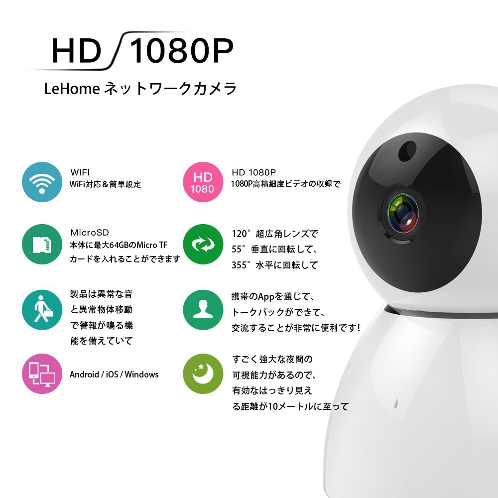 With the 1080P high definition video recording, it is a 120 ° super wide lens, it rotates 55 ° vertically, rotates 355 ° horizontally and can be monitored anywhere in the room.