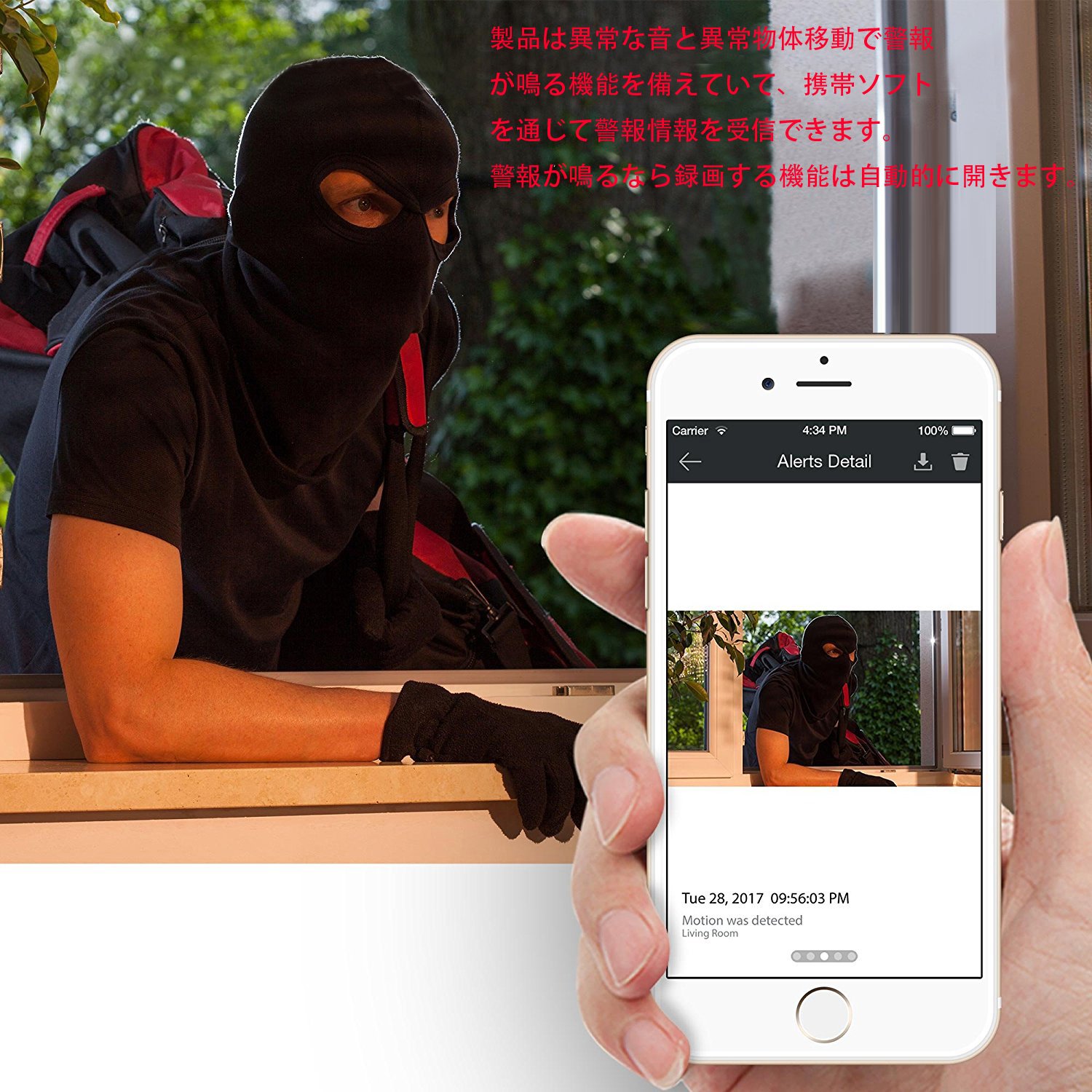 The product has a function to sound an abnormal sound and an alarm by abnormal object movement, and can receive alarm information through portable software.