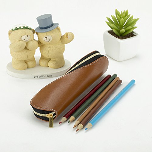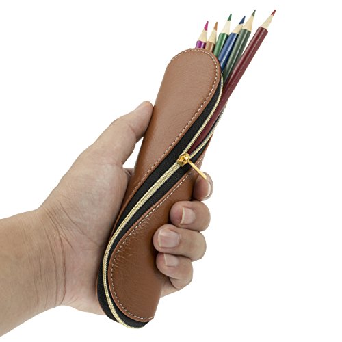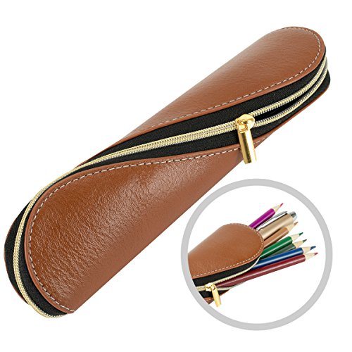 Ylyycc premium leather pen pouch Twist Zipper style Pencil case/holder (Brown)