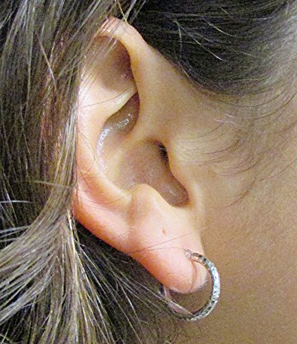 -. Title : 14k White Gold Diamond-Cut Hoop Earrings, (2mm Tube)