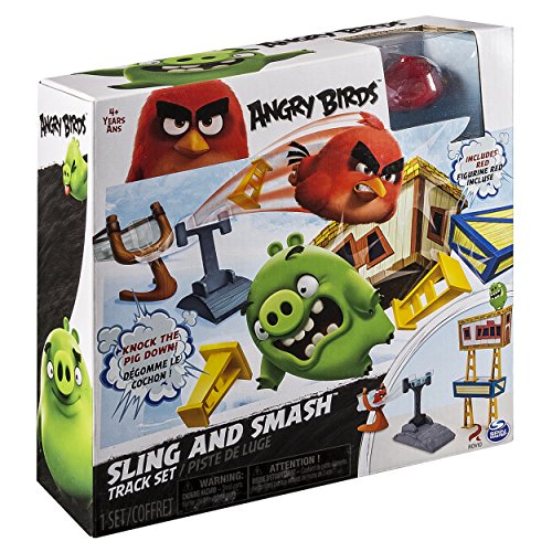 Now you can recreate your favorite Angry Birds moments in real life with the Angry Birds Sling and Smash Track Set. Inspired by the Angry Birds movie, this playset features Red, the fearless leader of the Angry Birds and a track set to launch him from. Catapult Red to knock Pig down and destroy the Pig City. Bring the excitement of Angry Birds home with Angry Birds Sling and Smash Track Set.Feature