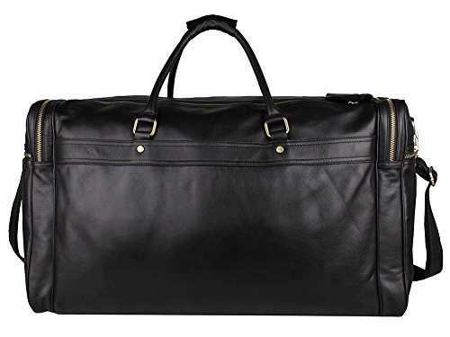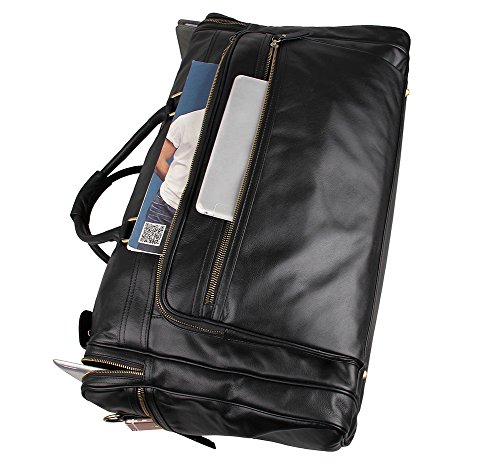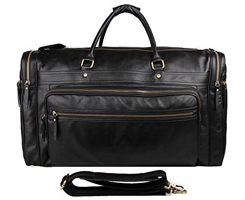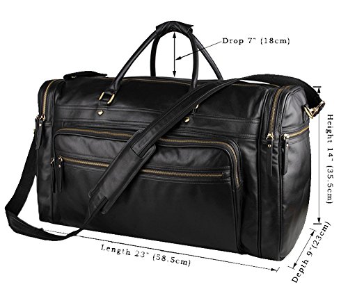 -. Feature : Size: 58.5cm(L) x 23cm(W)x 35.5cm(H) / 23.0 x 9.0 x 14.0 inch / Material: 100% Genuine cow leather, top solid brass hardware and bottom studs / With an adjustable, padded and detachable leather shoulder strap, make you carrying comfortable / Spacious compartment to carry your Clothes, 17-inch Laptop, iPad, Magazines, Books, Travel Items, etc / Premium leather duffel for air travel carry on lage, business trips, overnight or weekend getaways etc