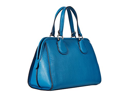 Updated in lightweight leather with a subtle pebbled texture, this softly structured satchel comes in a rich array of colors. The charmingly sized silhouette is finished with pretty ring hardware and bombé strap anchors inspired by archival Coach designs.