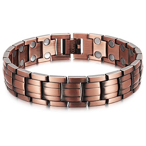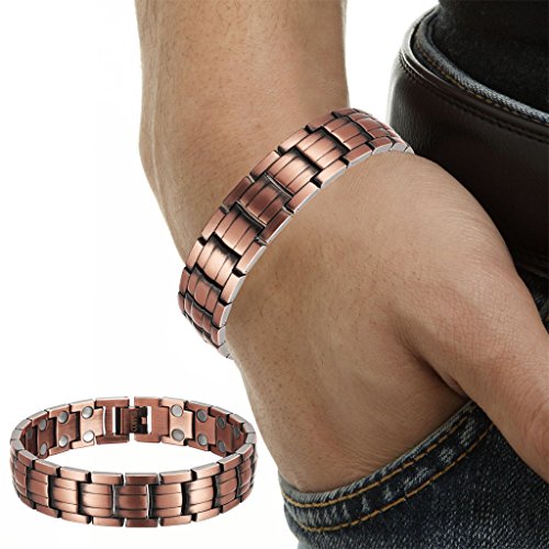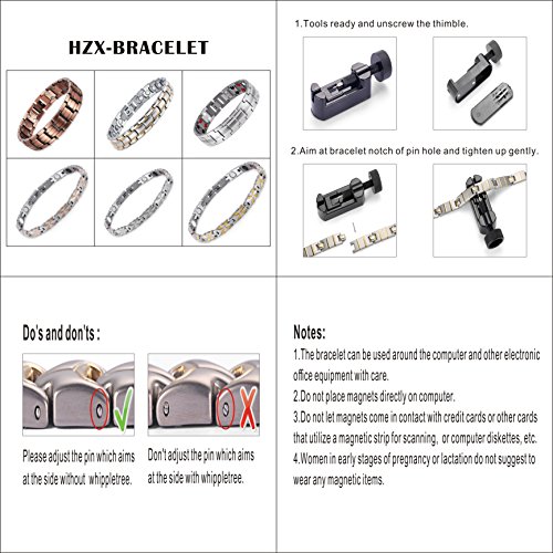 Studio : YC-HZX Publisher : YC-HZX Product Description Made With Pure99.9% copper Healthy Comfort: best for it's enhance the body muscle, regulate the balance of body function. When you are wearing bracelet,It makes you look smart. Low Maintenance: To clean bracelet you can simply wipe it with a jewelry cloth. 100% Hypoallergenic: That means no skin irritation for those with allergies to metal. Fashion Style 1.Bracelet is a kind of decorative beauty, men and women love to wear it. 2.Wearing bracelets makes you more elegant on all occasions. 3.The use of magnetic therapy technology, not only on elegant appearance, but more healthy on health effects,.Best gift to children, parents, friends. If you have the following questions, you may need our bracelet as an adjunctive therapy tool. 1. Pain from Arthritis, Carpal Tunnel, Tennis Elbow, Tendonitis, Repetitive Strain Injury (RSI) 2. Sports injury on joints.pain on the shoulders, arms, wrist or hands. 3.Poor circulation associated with Diabetes; cold hands and feet. 4.Migraine Headaches, Fatigue, Stress Anxiety Sleep syndrome Losing sleep became insomnia gradually ,this problem got a chronic disease afflicting people. Magnetic therapy will be a new therapy tool to improve sleep quality. Legal Disclaimer DO NOT use magnetic therapy if you: have a pacemaker, defibrillator, insulin pump, or any other implanted electro-medical device; are pregnant; have received a localized cortisone injection within the past 2 weeks over the same area.
