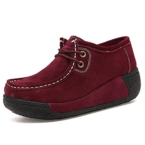 -. Title : EnllerviiD Women Platform Lace Up Suede Moccasins Winter Faux Fur Lined Wedges Loafers Shoes
