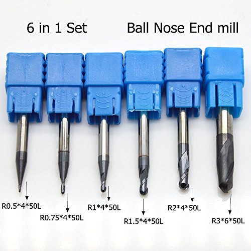 Ougar8 Radius 0.5 0.75 1 1.5 2 3 CNC Milling Cutter Center Cutting Tungsten Carbide TiAlN Coated Ball Nose End mill 2 Flutes Endmills Spiral HRC45 Micrograin solid carbide Router bits(6pcs/Lot)