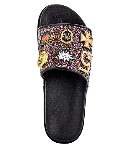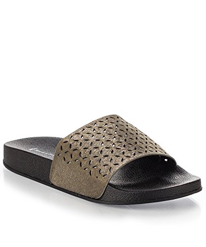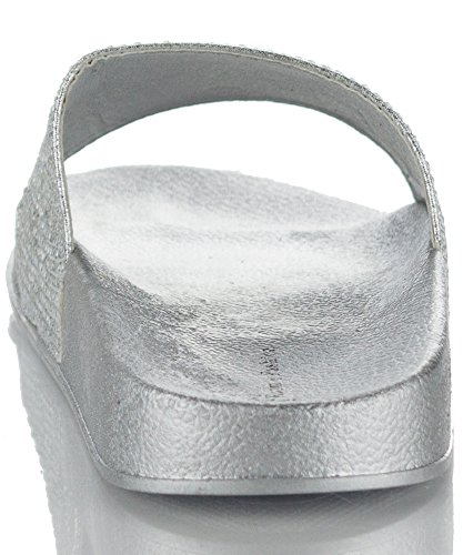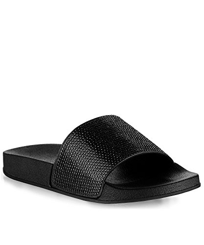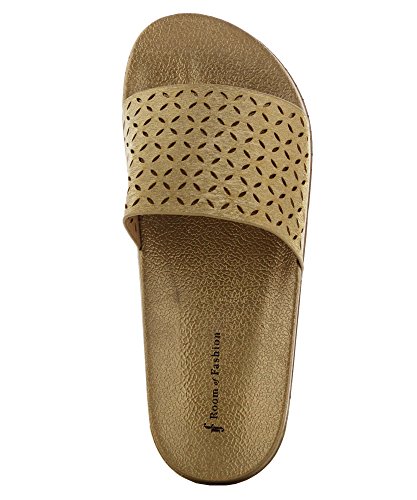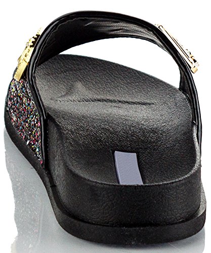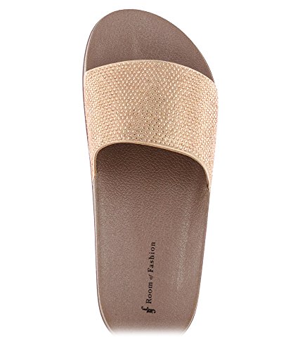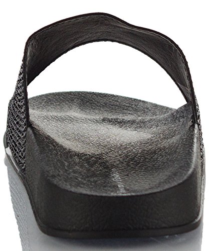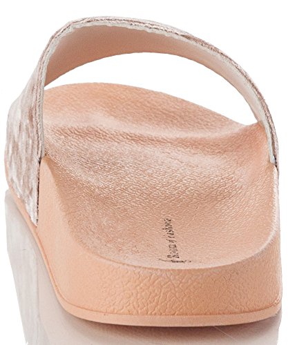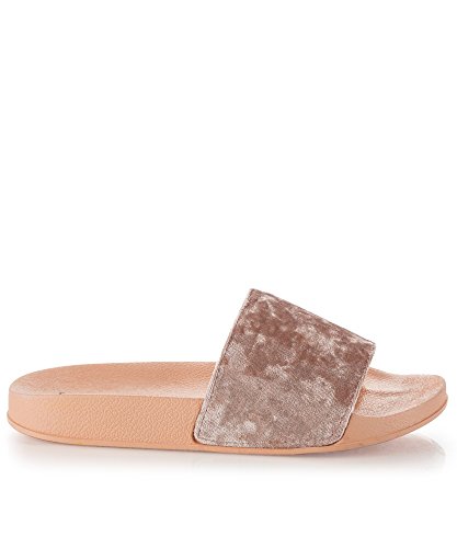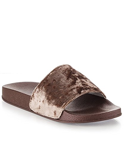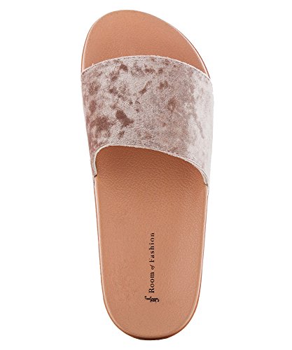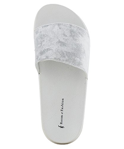 | RF ROOM OF FASHION Women's Fashion Velvet Single Strap Band Slides - Slip On Flat Sandals - Sof... |