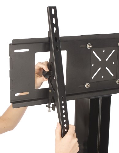 - Feature : Fits a 32 to 70 inch flat screen television that weighs less than 110 pounds. / Maximum VESA compatibility is 600mm by 400mm. / Height-adjustable glass shelf holds equipment, such as a cable box or a DVD player. / Tilting bracket adjusts the angle of a TV up to 15 degrees up or down. / Displays2go SKU#: TVS63TRP