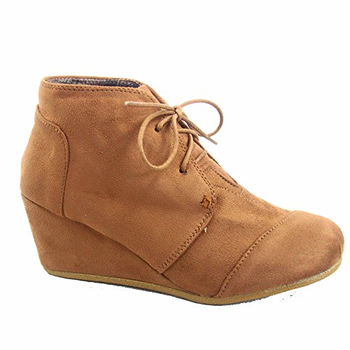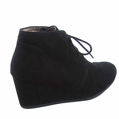 Forever Link Patricia-1 Women's Casual Oxford Ankle Booties Lace up Low Wedge Shoes