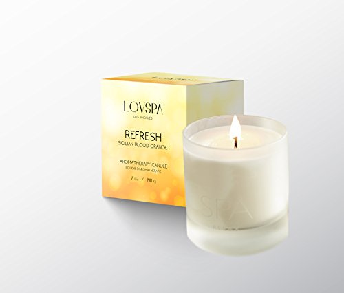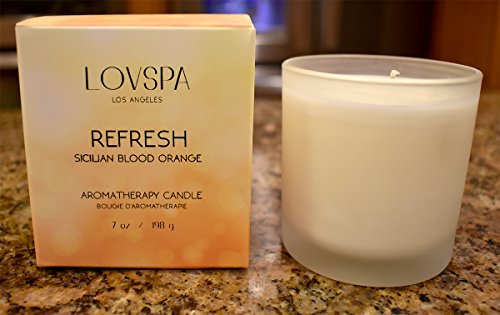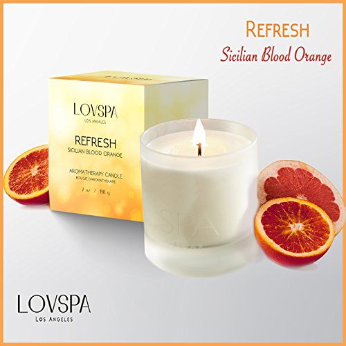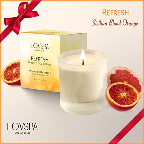 Sicilian Blood Orange Aromatherapy Soy Candle | REFRESH Citrus Scented Candle by LOVSPA | Energizing Grapefruit & Bergamot Notes | Great Christmas Gift or Stocking Stuffer! 7 oz
