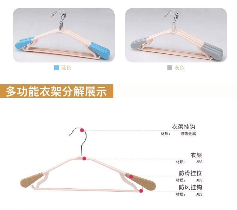 塑料防滑无痕衣架衣服挂干湿两用晾衣架衣服撑服装挂20只