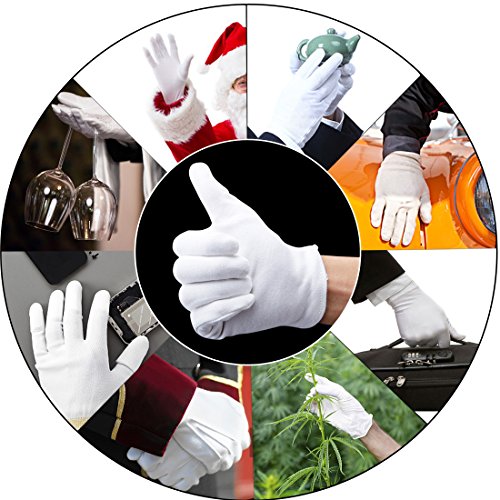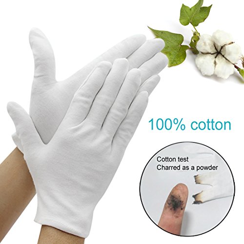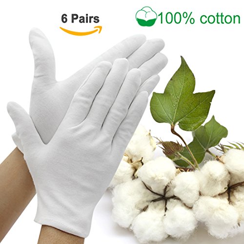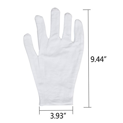 Studio : Jaciya Publisher : Jaciya Binding : Misc. Product Description Jaciya 6 Pairs Cotton Hand Spa Gloves Moisturizing Gloves Cosmetic Gloves, White (L Size) Features:The white cotton gloves comes in bulk qty of 6 pairs(12 pcs) white cotton gloves. Made of cotton fabric, these inspection gloves are hand/machine washable and re-useable, lightweight and quite comfortable to wear. These thin large gloves are approx. 9.4" length. One size fit most both adult men and women, approx for medium to large hand sizes Wide use application: hand spa, art handling, jewelry silver coin inspections, cosmetic, moisturizing and can be used for sleeping. Use during the day or at nighttime. they'll prevent lotion from staining your clothes or bed sheets. Specifications: Length: 9.4 inch Color: WhiteQuantity: 6 Pairs (12pcs) Wide Applications: Hand spa, art handling, jewelry silver coin inspections, cosmetic, moisturizing and can be used for sleeping. Warm Tips: When washing them, do not put in the dryer. Line dry, otherwise they will shrink. Package includes: 6 pairs of white cotton gloves 0