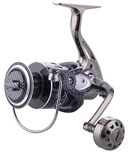 -. Feature : It is made from a special lightweight aluminum alloy that is much stronger, Durable and corrosion resistant than graphite fishing reel. / 12 + 1 stainless steel ball bearings, #4 nylon lines for 109yards, Line Capacity:(mm/M): 0.18/240, 0.20/200, 0.34/100. precision mesh brass gears, foldable Left-right interchangeable CNC machined aluminum handle create a saltwater ready spinning reel. / Patented design, sealed system and stainless steel screws for waterproof, dustproof, Scratchproof and better corrosion prevention / The metal wheel base is integrally formed, cold forging process, strong stability, the stress affordability is 7times more than ordinary fishing reels / Smooth Multi-disk drag system with superior oiled felt drag washers. 5.2:1 gear ratio assure a secure, fast retrieve.
