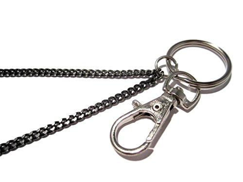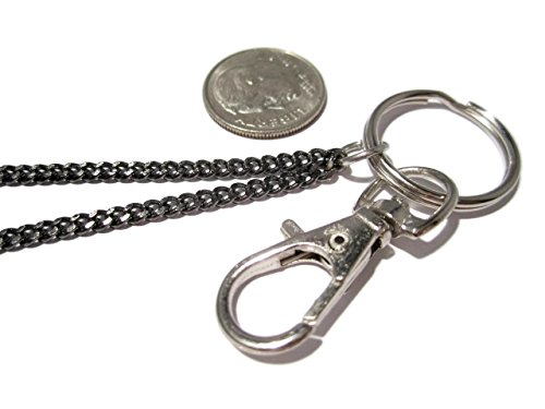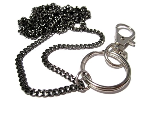 The chain is 33" long and measures approximately 18.5" from the back of the neck to the bottom of the clasp/clip. Includes a 3/4" split key ring and a 1.25" swivel top lobster claw clasp/clip.