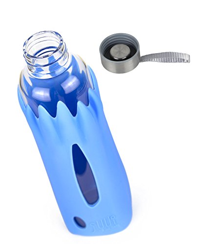 BE HEALTHY & UNIQUE - Glass Water Bottle - Spill-Proof Stainless Steel Lid – Water Bottle with Anti-Slip Silicone Sleeve - Shatter-Resistant Glass Bottle - Eco - FDA Certified - 18.6 Oz by jUUi