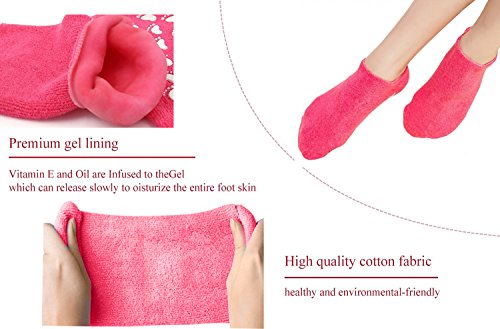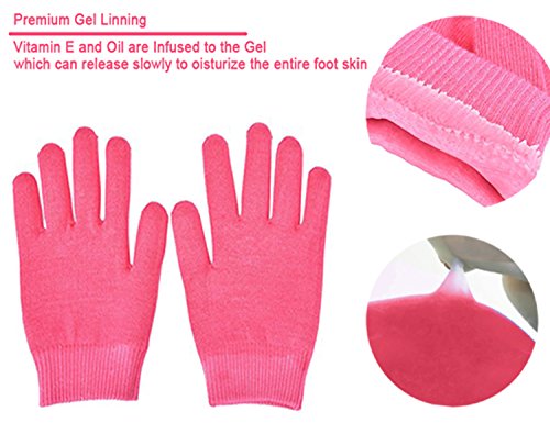 The gel gloves and socks with added natural essential oils, avocado oil, canola oil, grape seed oil, jojoba oil, and olive oil will continuously release the TPR mineral oil that will repair dry, rough skins, and cracked heels.