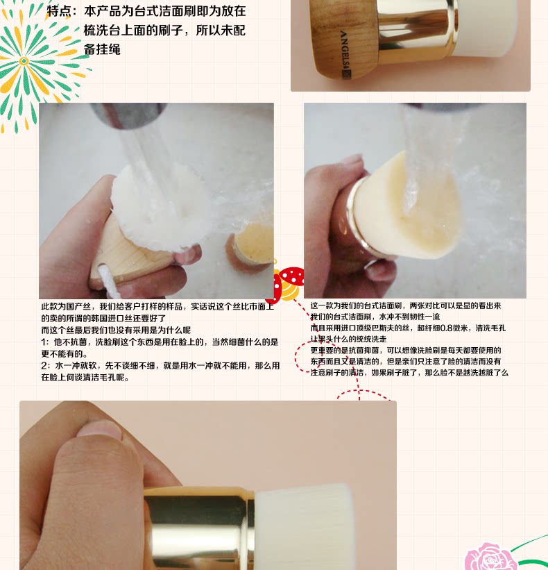 洗脸刷 手工洁面刷 台式洗脸刷子 进口抗菌丝材质