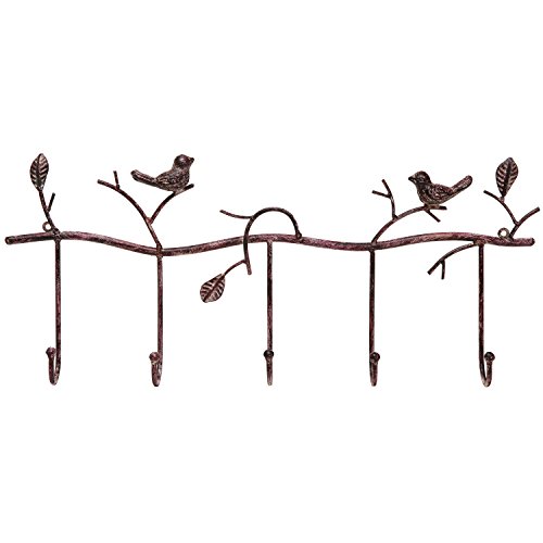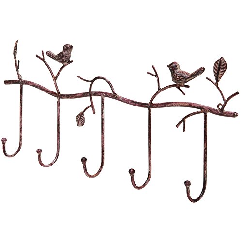Decorative Rustic Tree Branch & Birds Wall Mounted Metal 5 Coat Hook Clothing / Towel Hanger Storage Rack