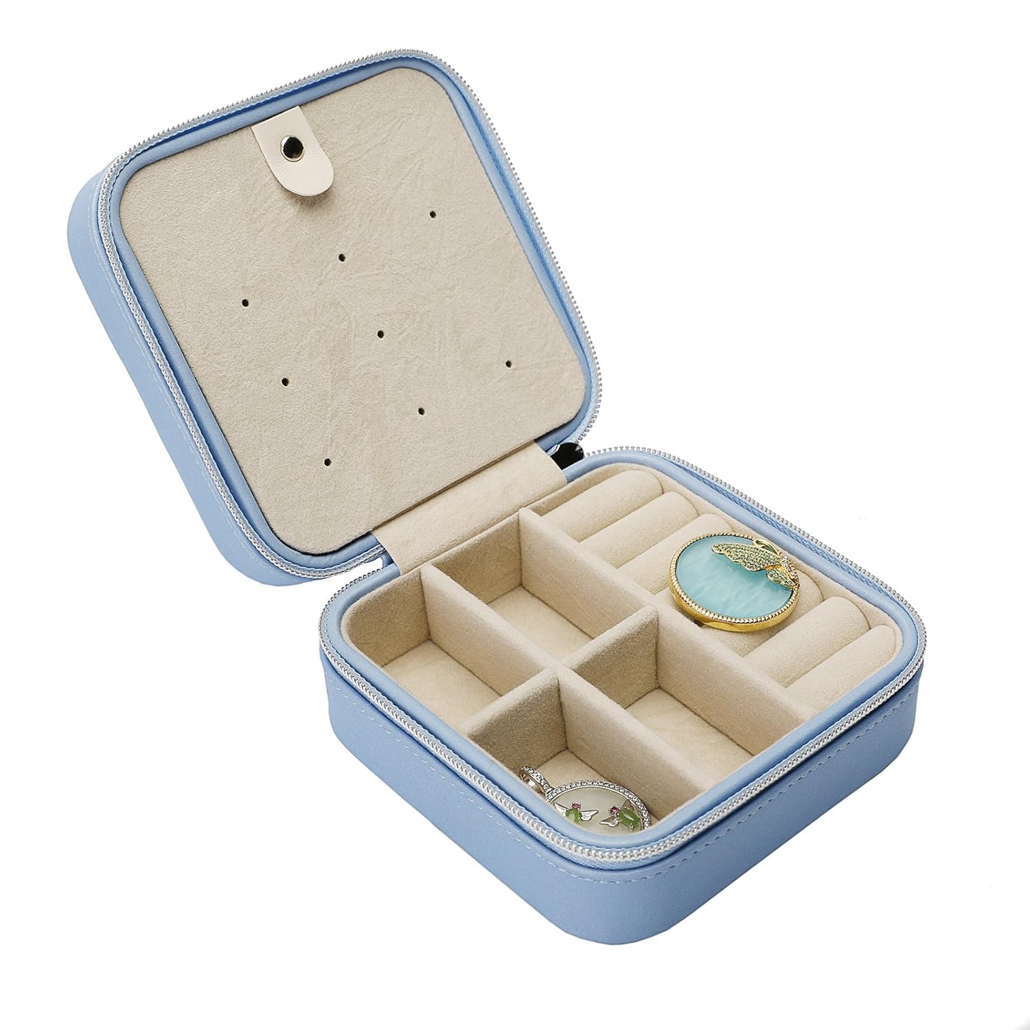 デザイン:このジュエリー収納ボックスはコンパクトで収納力が高いデザイン、ハンドバッグにも入れるサイズでジュエリー、アクセサリーなどを簡単に収納し、持ち歩きやすいサイズで、お泊り、旅行、ビジネス出張におすすめます。 構造:収納ポケット(ヘアピン、ブレスレット、ピアス、イヤリング、ネックレスなどの収納に)、七層ウェーブリングホルダー(指輪、ピアス等のアクセサリーの収納に)、仕切りスペース(ブレスレット、セーターチェーン、ブローチ等の収納に)。ご注意:このジュエリーボックスはジュエリー、アクセサリーなどの付属品は含まない。 贈り物に:洗練されたコンパクトなデザイン、上質でオシャレ、ホワイトデー、誕生日、母の日、クリスマス等の贈り物です、母親、彼女、妻、娘、クラスメート、恋人、友達へプレゼントです。 材質:上質なPVC合成皮革表層(本革ではない)、柔らかいベージュのビロード裏地、耐久性に優れるジッパーヘッドが付いています、安全性は高いです。軽量で持ち歩きやすく、洗浄・メンテナンスしやすく、あなたが大切なアクセサリーを優しく守ります。 寸法: 10cm(長さ)、10cm(幅)、5cm(高さ)。重量:約160g