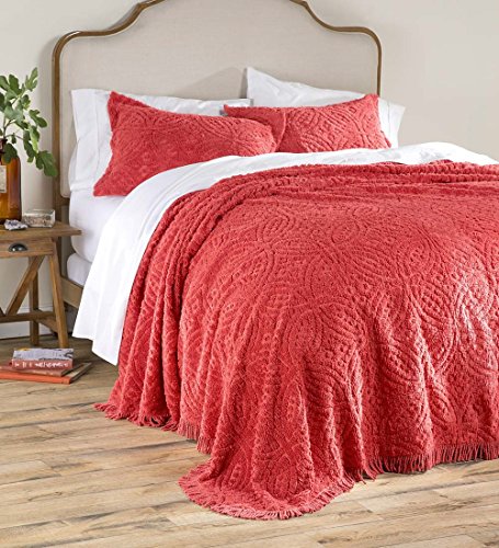 Studio : Plow Hearth Publisher : Plow Hearth Product Description Relax into the ultra-plush softness of our traditional chenille bedspread. The classic tufted wedding ring pattern on this 100% cotton bedspread is enhanced by a fringed edge. Dress your bed in this easy-care spread and your room will be transformed into a nostalgic look. Machine wash. Imported. Size: 102"W x 110"L. Style: Paprika. 0