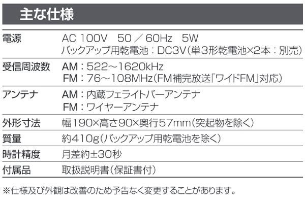 | 大文字表示で見やすいデジタル時計を搭載したラジオです!! |