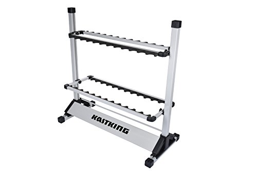 Super light and rust resistant aluminum frame easy assembly and portable patent pending design for convenient use cushioned holders protect your rod handle Kastking rod holders return your rods to the full upright position after a day of fishing. Its rust-resistant frame is made from high quality aluminum. Cushioned holders protect your rod handle and lock it firmly in place. Easy assembly, light weight, and a carrying handle make the Kastking rod holder totally portable. All models will accommodate larger saltwater rods with handles up to 1 3/4 diameter. The largest 24 rod rack holds 24 rods. The patent pending Kastking rod Racks are also light weight: 12-rod rack: 3lb 24-rod rack: 4.8lb fold flat rack: 2lb get one for your garage, cabin, or maybe even the bedroom. Have your rods at the ready when it's time to fish!. this one of a kind fishing rod rack holds all Brands of fishing rods such as Kastking Phantom kayak rods, Kastking perigee rods, ugly stick rods, St. Croix rods, G. Loomis rods, and others. Rack dimensions: dimension(height x width x depth): 12 rods: 15.5""X17""x12"" 12 rod Racks will fit in any nook or cranny and only uses 189.75 square inches (1.32 sq. Ft.) of floor space 24 rods: 28.5""X29""x13"" 24 rod Racks will fit in any nook or cranny and only uses 363.375 square inches (2.52 sq. Ft.) of floor space 12-foldable: 14""x16.5""X7.25""".Feature