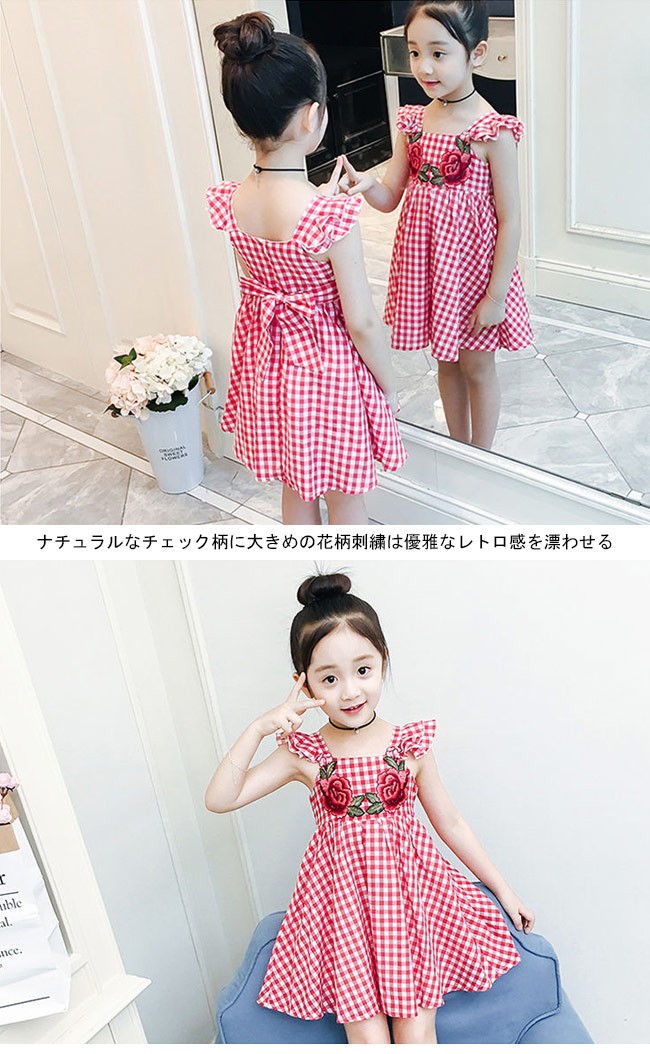女の子 キャミワンピ チェック柄 子供服 ワンピース ノースリーブ 花柄刺繍 女児 膝丈ワンピース ハイウエスト キッズ 夏物 薄手 レトロ女の子用のキャミワンピが登場吸湿性・通気性に優れた薄手綿混紡素材を厳選、夏に最適な着心地をもたらすナチュラルなチェック柄に大きめの花柄刺繍は優雅なレトロ感を漂わせる肩ベルトにフリル付きのデザインもとてもキュートなアクセントを付ける背中に大きめの蝶結びベルトが付き、背を向けると不意に見せる甘さもポイントの一つカラー:写真色素材 綿混紡サイズ(cm) 110 120 130 140 150 160110 総丈60 バスト63120 総丈63 バスト66130 総丈66 バスト69140 総丈69 バスト72150 総丈72 バスト75160 総丈75 バスト78ご注意:※サイズは平置きサイズです。素人採寸ですので、若干の誤差がございます、ご了承ください。