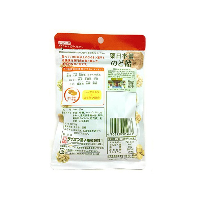 원본상품명: ライオン菓子 日本堂のど飴 70g×6袋