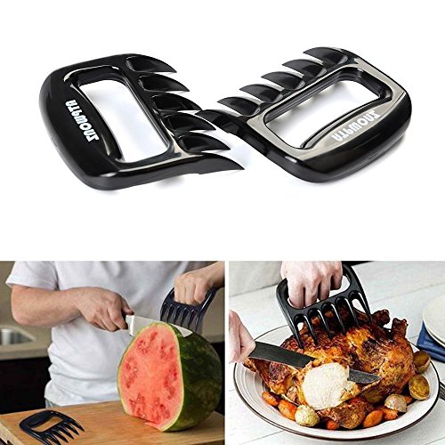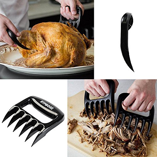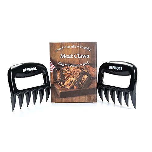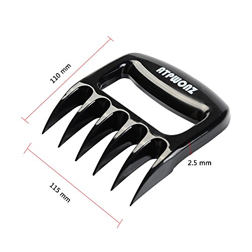 Product Description Multifunctional ATPWONZ Pulled Pork Shredder Claws can : Meat shredding: pulled pork, chicken, beef Putting meat on and off the grill Flip your pork, turkey, beef in the oven Holding a large piece of meat while shredding or cutting Shred and pull pork butt with ease to have premium cut pulled pork sandwiches! Scoop charcoal out of or into the grill Good for holding down a whole chicken, deep fried turkey, or just about an hot piece of meat Great for tossing salad It also with Sharp and high plastic quality material ,can keep your hands protected and from getting burned