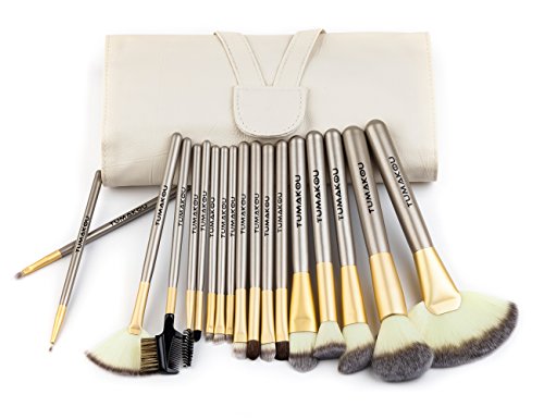 TUMAKOU 18 PCS Makeup Brush Set Professional Wood Handle Blending Blush Concealer Eye Face Liquid Powder Cream Cosmetics Lip Brush Tool...