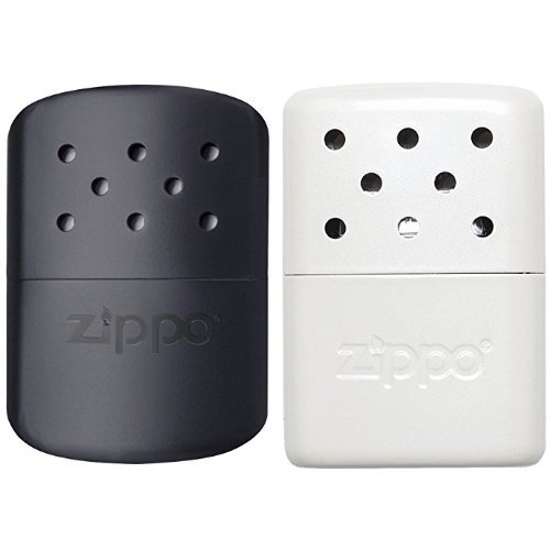 -. Binding : Product Bundle -. Feature : Includes easy fill technology / Improved fill cup helps reduce spills / Perfect for all cold weather activities -. ProductGroup : Sports -. ProductTypeName : OUTDOOR_RECREATION_PRODUCT -. Title : Zippo 12-Hour Black Matte Hand Warmer and 6-Hour Pearl Hand Warmer Bundle